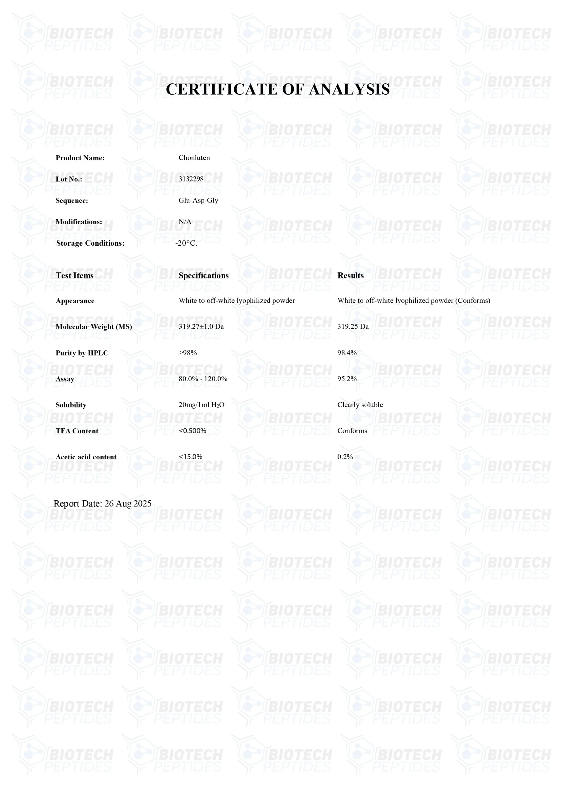 Chonluten (T-34) peptides are Synthesized and Lyophilized in the USA.