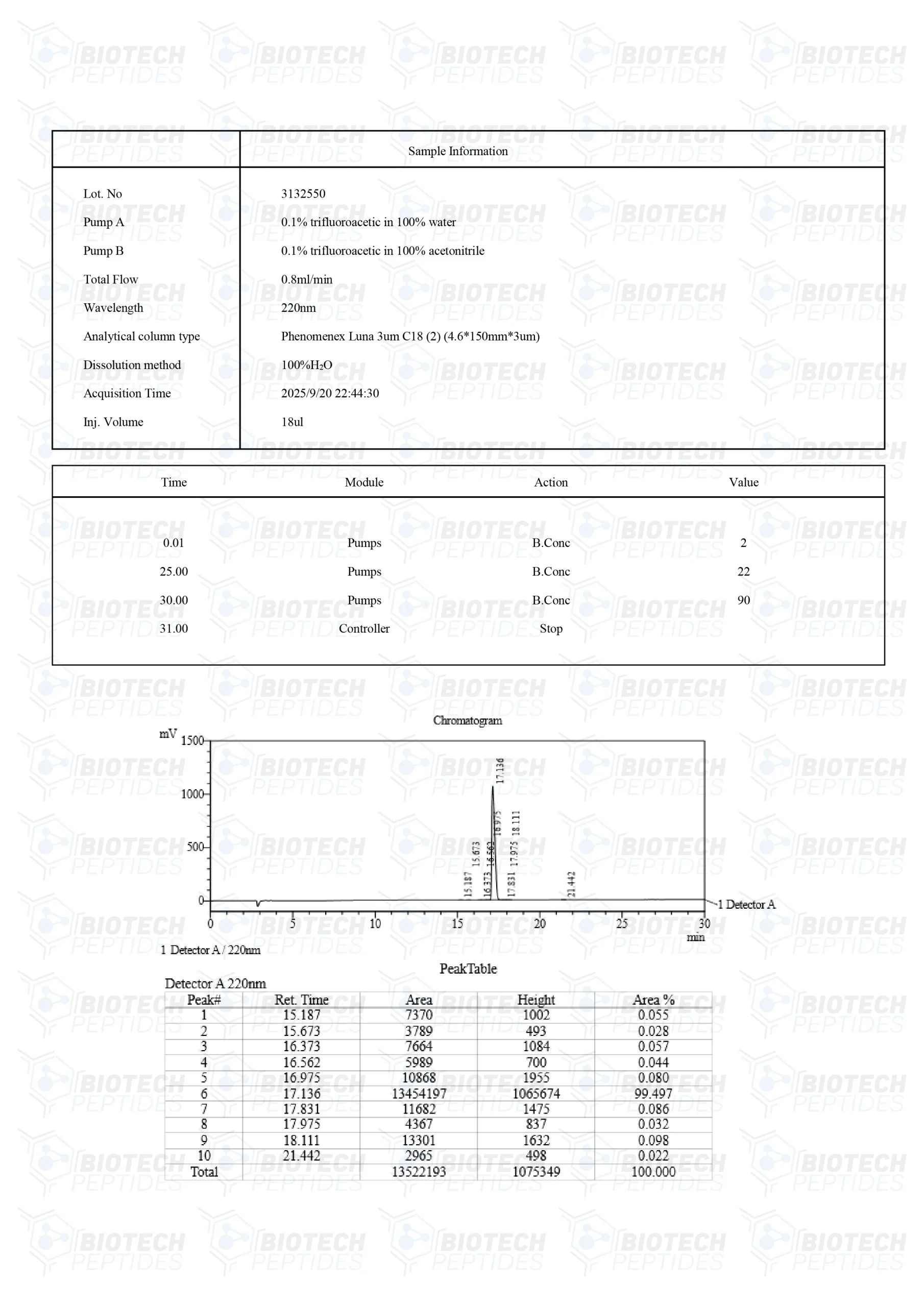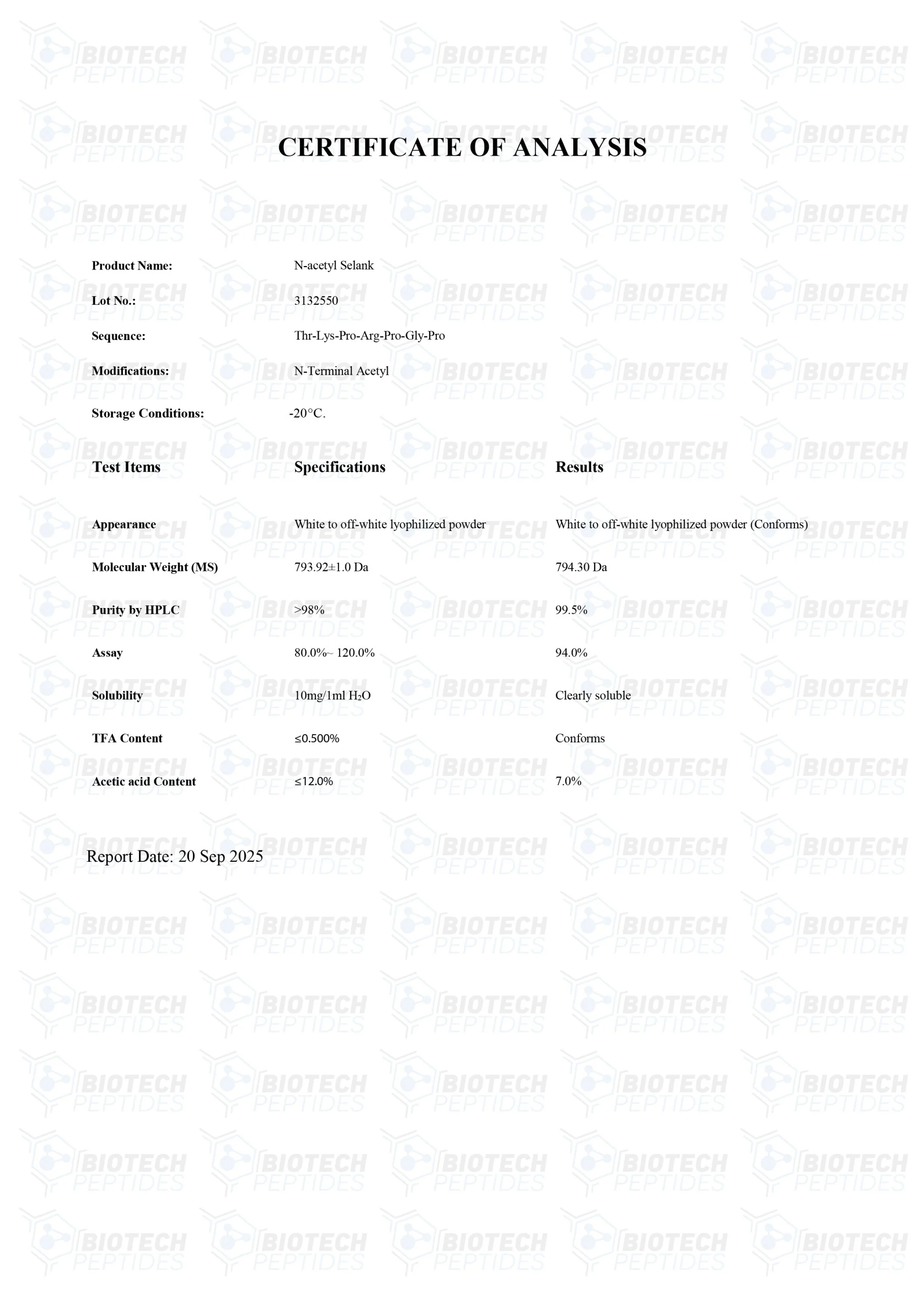- Sequence: AC-THR-LYS-PRO-ARG-GLY-PRO